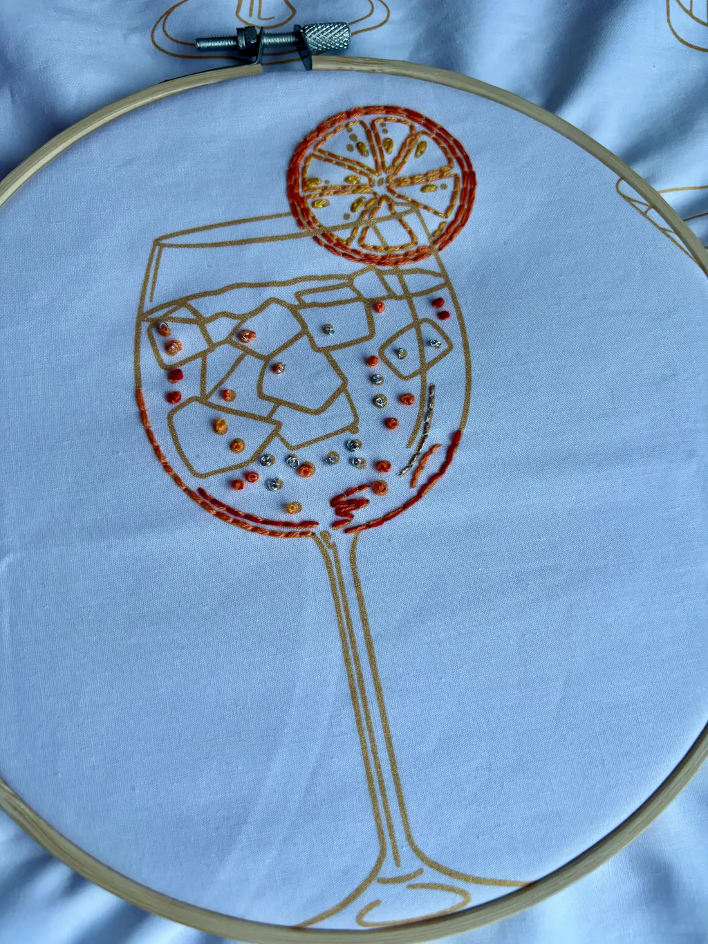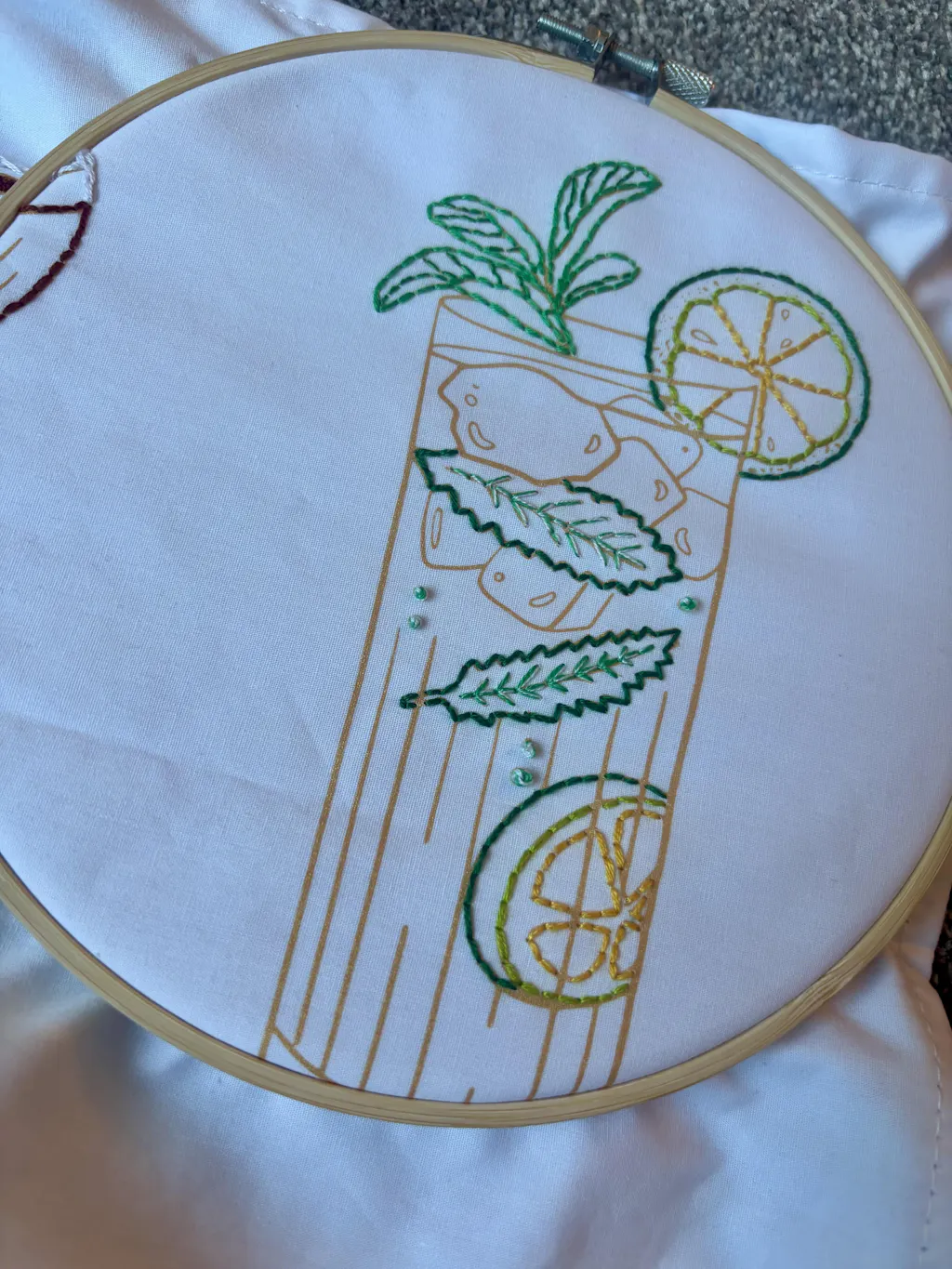 The kit includes a handy template with embroidery tips and beginner stitches, plus a quick recipe for each cocktail so you can mix, sip, and stitch your way through all nine designs.